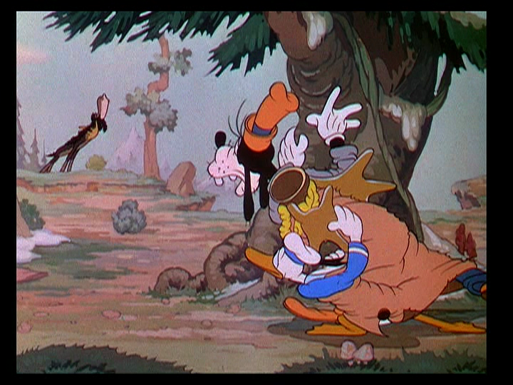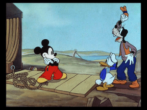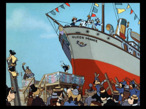 The camera moves to the distraction, and we see Donald Duck pushing an ice cream cart, with lemonade and bags of popcorn for sale as well. He stops to admire the music, then pulls a flute from the front of his uniform, wanting to join in with the orchestra. In the middle of the William Tell Overture, Donald begins to play Turkey in the Straw, which gets the orchestra to switch to the similar sounding tune. When Mickey notices the switch, he grabs Donald’s flute and breaks it in half, but Donald has another trick – or flute, rather – up his sleeve, and resumes his tune while Mickey tries to bring the concert to a halt.