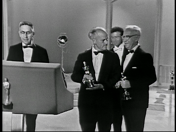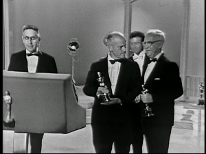 Ub (L) winning a special Academy Award for the sodium matte traveling process used successfully in Mary Poppins