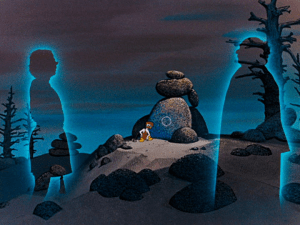 Poor Goofy is reaching the end of his rope as George squeaks the chalk during his punishment