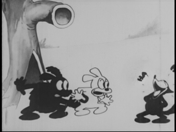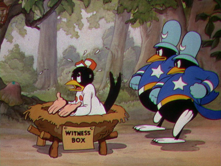 The short opens with the narrator explaining how school has become a vital part of every child’s life. We then see a mother dragging her reluctant son George to school, dressed in a smart suit and sailor cap, holding an apple for his teacher. When he reaches his clubhouse in the front yard, he quickly changes and emerges in somewhat “cooler” attire. We then see the other children walking to school, “whetting their appetites for knowledge” (splashing through rain puddles) and “forming friendships for the future” (a boy is seen carrying all of a pretty girl’s schoolbooks).