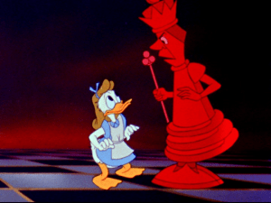 As the audience’s attention turns to the school, the doors open to reveal the educator, played by Goofy. He steps forward as the crossing guard is letting the kids cross the road, but unfortunately Goofy gets stuck in the middle of the road as the cars speed past. The audience then sees his classroom: the children have gone wild, throwing books and ink, making a complete mess of the room. Before Goofy enters, he dons an umpire’s outfit, ready to tackle anything that comes his way. He calms everyone down, and the students begin to sing a good morning song.