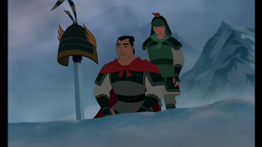 Shang trains his troops diligently, although the men are rather green to begin, and he reaches the conclusion at one point that Mulan (going under the name Ping) should go home. Determined to stay, Mulan proves her worth, and soon, the whole team is battle-ready. Mulan makes friends with Yao, Ling, and Chien-Po, who become her closest comrades. Mushu pretends to be an officer and gets the team sent out to meet the other Imperial Army troops. When they get to the pass, they find that the village there has been obliterated, including the Imperial Army section led by Shang’s father, the general. They then are caught in a surprise attack by the Huns, but Mulan saves the day by crushing the Hun Army with an avalanche. After she saves Shang from the fast-approaching snow, he realizes she’s been injured in her dealings with Shan-Yu, and a medical tent is set up for her. Unfortunately, her secret is discovered, and Shang is forced to kill her. He decides to spare her life, as she had saved his, and his debt has been repaid. Mulan is then deserted in the pass as the Army moves to the Imperial City.