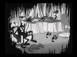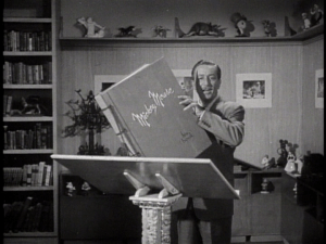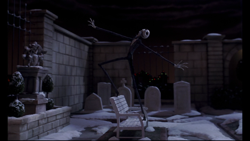 Jack wanders away from Halloween Town through the night, and finds himself in a part of the forest he hasn’t seen before, in front of a tree with a Christmas tree design. Enchanted by this strange design, he opens the door and is sucked inside, falling into Christmas Town. Meanwhile, the Halloween Town residents are frantically looking for Jack. But just as Sally, hearing the alarms, finds a way to escape the doctor’s house, Jack returns with all of the items he’s taken from Christmas Town, and calls an emergency town meeting to discuss everything he’s seen. Although he tries to explain, the town doesn’t understand the “special kind of feeling in Christmas Land.”