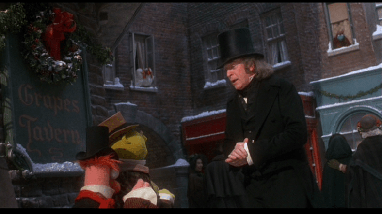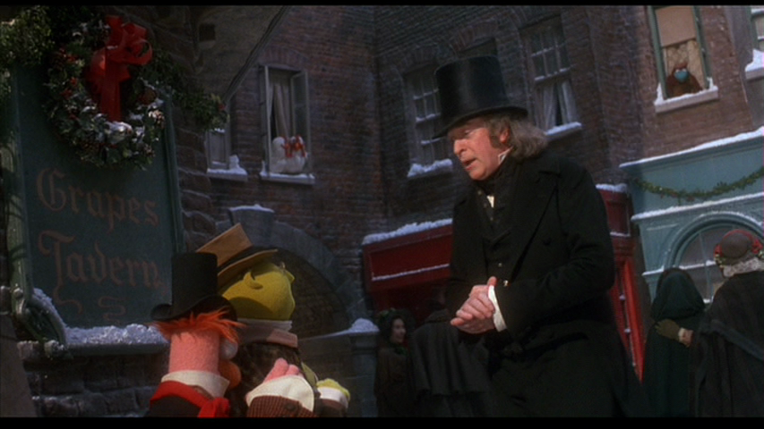 Scrooge, having turned over a new leaf, finds the charity volunteers and offers them a large sum to help the homeless and destitute