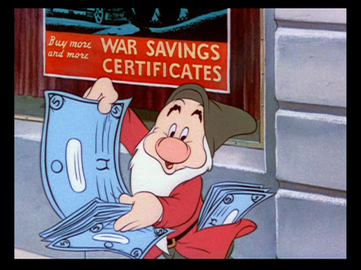 Even Grumpy comes out of the post office happy as he carries his war bonds
