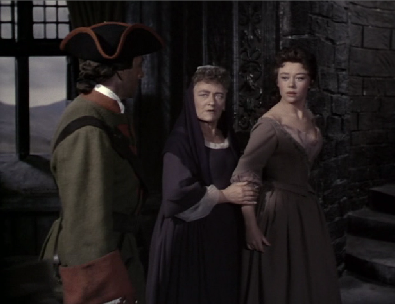 Rob Roy watches as the British invade the castle, taking all of Lady Margaret’s belongings as punishment for harboring a fugitive, then taking her to Sterling Castle as a prisoner. Helen is dragged away, but is saved just in time as Rob Roy appears. A fight ensues, with Lady Margaret using her late husband’s pistols to save her son, but is shot herself, although she brushes it off so as not to worry him. The British men then set her house on fire, alerting all the MacGregor men in the village. Rob Roy, Helen, and Lady Margaret are captured inside the burning building, but Rob Roy, to save his wife and mother, decides to sacrifice himself. Suddenly, he hears the cries of his clansmen, and Helen takes Lady Margaret away from the smoke, only to find that she’s been fatally wounded. Her last wish is to ask Rob Roy to stop the fighting, and Helen agrees to ask.