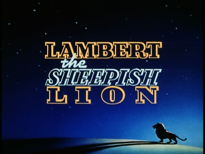 The seasons change, and soon the lambs are all grown up, and so is Lambert. However, although he is a full-grown lion, he still acts like a sheep, and is still the butt of the jokes of the rams. One night, as everyone is sleeping, the sound of a wolf wakes Lambert up, and he spies a hungry wolf surveying the flock. The wolf decides that Lambert’s mother is to be his meal, and the rams all hide behind trees. Although Lambert is terrified, he decides to screw up his courage and act like a raging lion, scaring the wolf silly. After saving his mother, the flock now considers Lambert one of them, and he lets out a triumphant “baa.”
