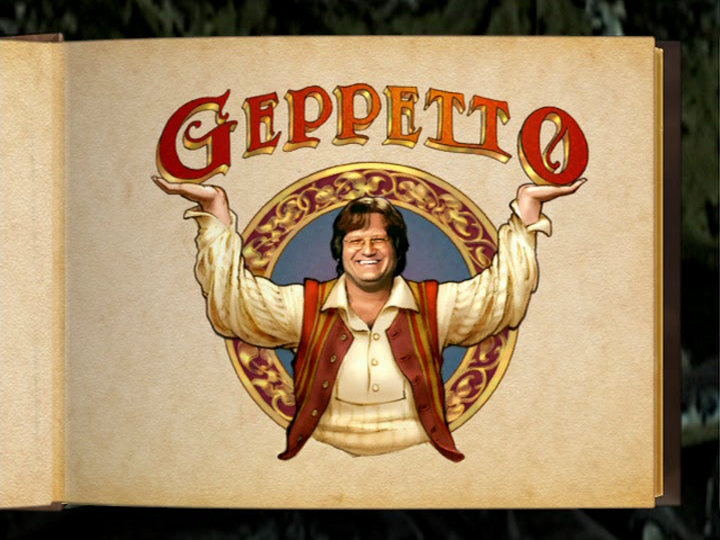 Geppetto searches for his son, and runs across the Blue Fairy again, who is pleased to see that Geppetto is beginning to realize that he is responsible for what he created, but Geppetto protests that it’s about Pinocchio rather than himself. As he runs away from the Blue Fairy, he comes across a magician who isn’t very good at being a magician. After looking around at the magician’s props, Geppetto remarks that Lazardo has a talent for making toys, but Lazardo tells him that he became a magician because his father was a magician, and his father before him was a magician. He wanted to be a toymaker, but he couldn’t bear to disappoint his father. Geppetto finally understands the message, and resolves to make it up to Pinocchio once he finds him. Geppetto then comes across the town of Idyllia, where an inventor named Professor Buonragazzo creates “perfect children.” Although Geppetto is at first taken by the idea of a perfect child, he realizes that he doesn’t want a child that’s perfect, he wants his son. As he leaves Idyllia, the Blue Fairy appears again, directing him to Pleasure Island, where Pinocchio is, and revealing Stromboli’s lies.