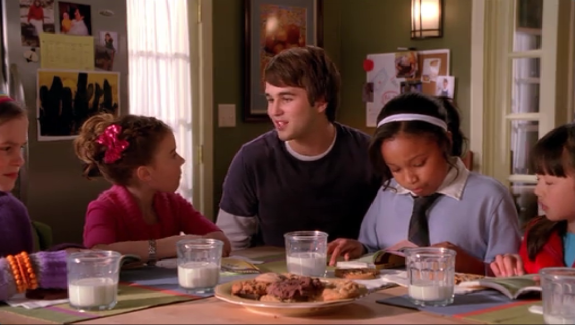 Alex then has to help the girls get badges, and convinces them to do all of his chores for “badges” he creates. As the girls work on fixing Alex’s car, Dina appears, looking for their den mother. In a bit of quick thinking, they disguise Alex as a woman having a facial, with the girls pretending to have a home spa day. Finding out that Alex will be heaving to the Bumble Bee leadership meeting with Matisse, Emily and the troop decide to “help” him prepare for the trip (calling it a date), surprising him with the finished car. He runs into his neighbor Mrs. Jacklitz, who seems disappointed in the fact that he is using the Bumble Bees. Alex brushes her off and goes to pick up Matisse for the leadership meeting, and the two share a tender moment, with Matisse admiring Alex for stepping up and helping his sister. At the meeting, Dina bullies the other den mothers in selling Bumble Bee cookies, but Alex refuses to be bullied, and has the other den mothers back him up. Matisse is even more impressed with Alex, and gives him a kiss on the cheek when he drops her off.