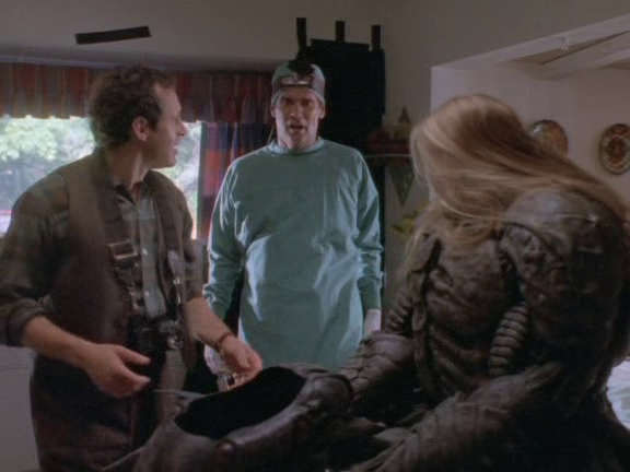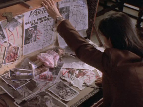 Buzzy decides to pursue the story, and enlists the help of Anna to play Sally Shine for his photographs. An actress arrives at the hotel named Claire Poulet, and while Buzzy is smitten with her, he thinks she’s too young to play the part. She leaves dejectedly, but Buzzy changes his mind, as he’ll doctor the photos later anyway. The three start to hear music, and Buzzy heads to the kitchen to investigate. In the kitchen, he hears the voices of kitchen staff, but no one is there. Anna joins him in the kitchen, and they carefully look around when they hear a voice singing a nursery rhyme. The dishes begin to rattle in the cabinets, and they see the ghost of a young girl skipping toward them surrounded by green raindrops. Behind them, a headless body makes its way over to them on a cart, holding a cleaver. Buzzy and Anna run out, screaming about how the place is haunted. Buzzy decides to bring Jill back tomorrow to prove that there are ghosts at the Hollywood Tower Hotel. When he heads back to the Banner to talk to her, she finally takes him up on his story, but is soon annoyed that this seems to be another one of his lame tabloid stories, and tells him to never come back to her office again. After he leaves, however, she decides to run a background check on Abigail Gregory, taking the story in her own hands.