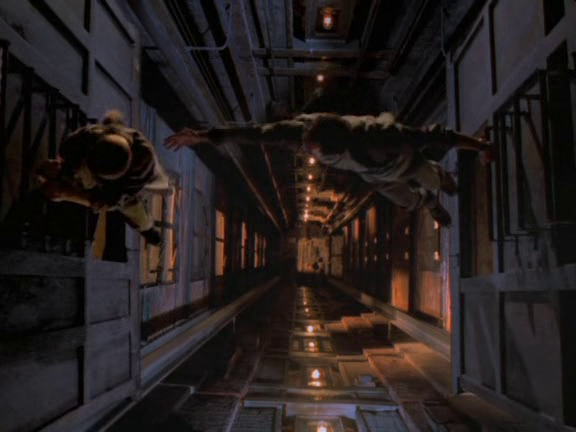 Buzzy tries to help Anna escape from the soon-to-crash elevator using the safety hatch on the elevators