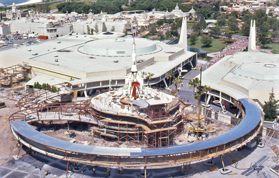 “Scaled-down Apollo-Saturn replica rockets propelled guests up to 60 feet above Magic Kingdom park.”