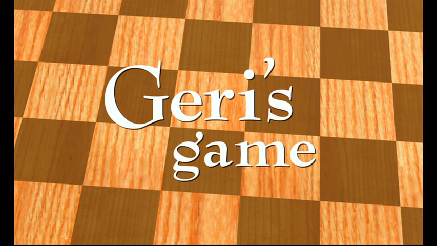 The short begins at a park on a fall day, where Geri is setting up his chess game. He puts on his glasses and moves a white pawn, then waits, while it is revealed to the audience that he is not playing against anyone, and the park is empty. He then takes off his glasses and slowly makes his way over to the other side of the table and makes a vicious move with a black pawn. He carefully gets up again and moves back to the other side, putting on his glasses and playing against himself. This continues, with Geri playing a game against himself with two personalities: the aggressive player on black, and the gentler, less-confident player on white. The aggressive Geri is taking out the gentler Geri’s pieces one by one, leaving gentler Geri rather protective of his Queen. Aggressive Geri teases gentler Geri, as he has nowhere to go. Suddenly, gentler Geri has a heart attack, and falls to the ground. As aggressive Geri checks himself, he realizes that he is fine, and checks on the other Geri. While aggressive Geri isn’t looking, gentler Geri switches the board, so it looks as though he’s been playing black the whole time. Aggressive Geri checks on gentler Geri as he gets back in his seat, then resumes his boastful laughter. Gentler Geri then makes his winning move, shocking aggressive Geri, as he hasn’t realized the ruse. Angered about the loss, aggressive Geri gives up the game, and reluctantly hands over the prize: a set of false teeth. Geri sits back and laughs, alone in the park.