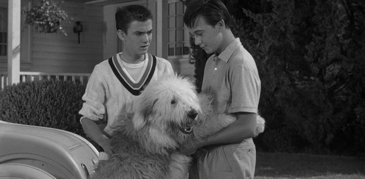 As Wilby and Buzz continue to argue, the girl’s dog Chiffon runs across the street to greet Wilby. Buzz and Wilby return the Chiffon its owner, and an angry Allison storms away. They meet the girl, Francesca, and her father Dr. Valasky, and are invited inside. They discover various ancient artifacts all around, including a portrait of Lucrezia Borgia with a sheepdog very similar to Chiffon. When asked to take artifacts to the museum, Wilby and Buzz volunteer to give Francesca a ride. At the museum, Buzz ditches Wilby and runs off with Francesca, and Wilby stumbles across Professor Plumcutt, who has been working on an exhibit at the museum. Plumcutt shows Wilby the new exhibit about the Borgias and their use of sorcery, including shapeshifting. Wilby bumps into a table on his way out and knocks over some jewelry, leaving Plumcutt to collect the pieces as Wilby tries to find Buzz and Francesca. He has to walk the entire way home, and is furious when Buzz breezes by in his car. Later, Wilby is packing up the basement, with Moochie helping, when Wilson calls the boys up for bed. Wilby discovers a ring from the museum had landed in his pants cuff, and reads the inscription on the inside: “In canis corpore, transmuto.” He tries the ring on, and tries to translate the inscription, repeating it over and over. He is unaware that he is transforming into a dog, until he spots his own reflection; meanwhile, Chiffon disappears from Francesca’s house.