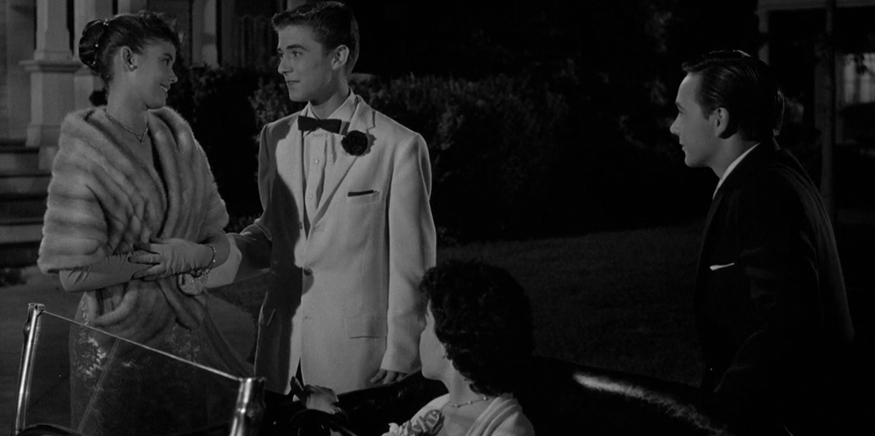 It’s a peaceful day in suburbia, where Wilson Daniels gets his paper and scares away a dog that’s passing by his lawn. Inside, he grouses about a dog getting a medal for pulling a baby from a burning building, but his wife Frieda, who loves dogs, tries to calm him down. Wilson was a mailman, which accounts for his disdain of “man’s best friend.” Their sons, Wilby and Moochie, are in the basement working on a missile interceptor, which goes off and shakes the entire house, destroying the china. In the basement, Wilby is trying to figure out the problem, as he hasn’t even turned the interceptor on. He and Moochie have to evacuate, as it’s too late to take it outside. Moochie clears the house of his family, and they can only watch as the missile bursts through the ceiling and shoots into space. Later, as Moochie and Wilby work on fixing the roof, Wilson demands that Wilby stops all of his experiments and gives everything away. As he steps down from the roof, he waves to his next door neighbor Allison, the most popular girl in town, who is off to place tennis with her beau Buzz. As he argues with Buzz about wanting a date with Allison, a new family moves into town, with a beautiful teenage girl speaking French.