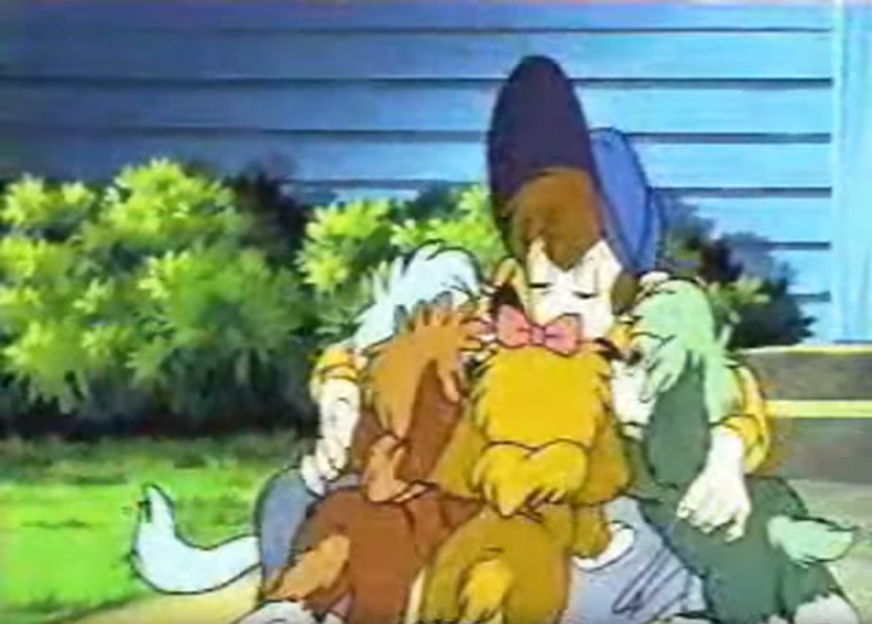 Jamie says goodbye to the Fluppies as they set off to find their door.