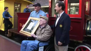 On May 10, 2005, a special ceremony was held in Disneyland for animator and member of the Nine Old Men Ollie Johnston. Under the ruse of receiving a special honor for contributing to the Carolwood organization, Johnson was surprised to find that his locomotive, the Marie E., was on the Disneyland tracks to allow him one last ride. Johnson, along with Ward Kimball and Walt Disney, were train enthusiasts, but in his older age, Johnson had to sell his train as he was unable to operate it. Sold to none other than John Lasseter, Lasseter was able to find a way to bring it to the park in a special ceremony. Friends and family were gathered at Frontierland station to watch Johnson ride his beloved train one last time.