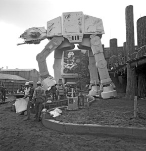 On January 13, 1990, though the attraction had been open since December 15, 1989, an official dedication ceremony was held for the Star Tours attraction in Disney-MGM Studios Park. This was the second version of the attraction to open in a Disney park (with Disneyland receiving the first version on January 9, 1987), but this was the first version to receive a Hollywood treatment, complete with the recreation of the Ewok Village from Return of the Jedi for the queueing area, along with a 35-foot Imperial All-Terrain Armored Transport Walker. On hand for the ceremony were Star Wars creator George Lucas, film actors Mark Hammil and Carrie Fisher, and then-CEO Michael Eisner.