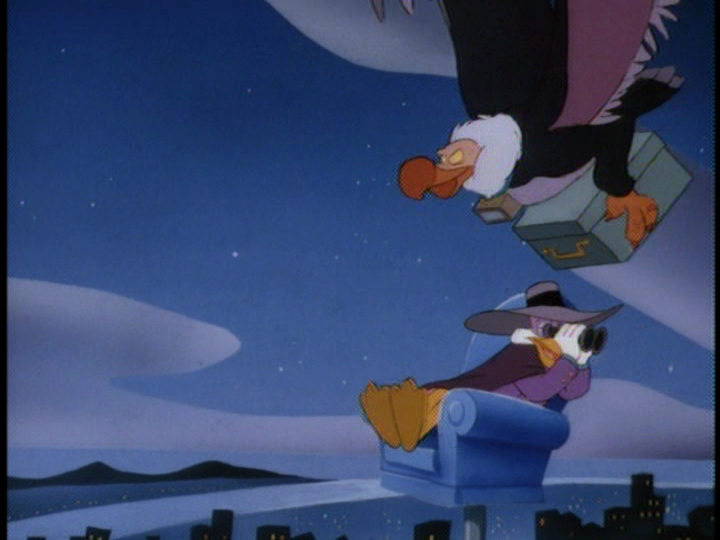 As Darkwing searches for danger, a suspicious condor flies past him carrying a trunk