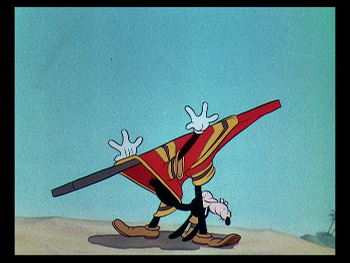 At one point, Goofy gets his surfboard stuck in his swimming outfit, and can’t figure out how to get it out