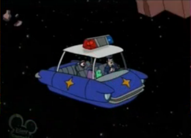 The next morning, T.J. sneaks back to spy on the school and finds Prickly’s golf outfit in the trash. He discovers that the strange man that scared him away from the building before has been disguising himself as Prickly. When he brings this back to his friends, they find a note in the pocket reading “Help Me!” The gang then decides to go into the school to save their principal. After they head out, Randall pops out of a nearby garbage can, having heard their entire conversation, and he goes to rat them out to Miss Finster. She follows him, determined to stop T.J. from breaking into the school. Once inside, the gang hides in their old classroom and hear Prickly’s voice coming through the vent. They crawl through the ventilation system and observe an evil scheme taking place, with the villain, Dr. Phillium Benedict, demanding that the operation stay at Third Street rather than moving to another location, as his scientists suggest he does. The children spy in horror that the tractor beam is used to move the moon. Unfortunately for Benedict, the beam stops working, and the scientists must resume their work under his temper. The vent holding the gang breaks, revealing the kids to the scientists, and they quickly make a break for it. The rest of the gang escapes, but T.J. is caught and pulled back inside.