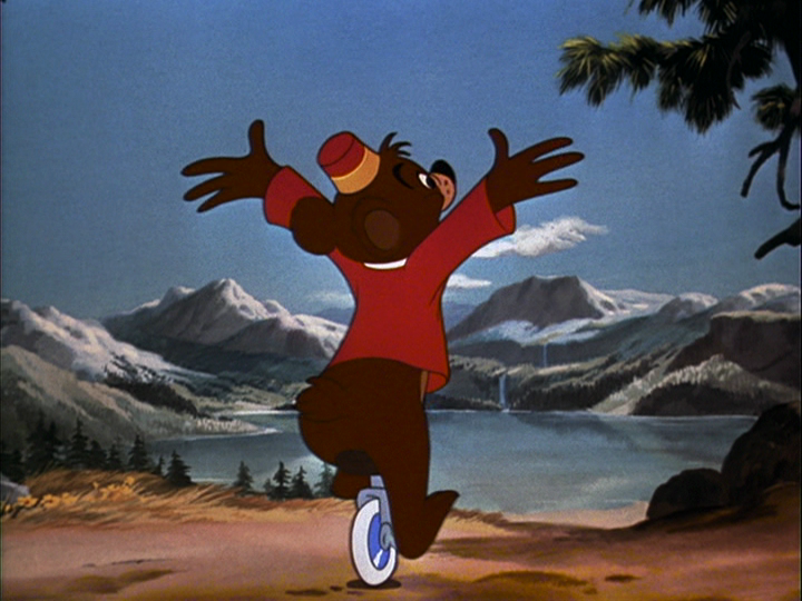 One of the more well-known segments in this film is the Sterling Holloway-narrated version of Sergei Prokofiev’s Peter and the Wolf. The story, with the characters “speaking” through corresponding musical instruments and themes, is about a young boy named Peter (string quartet), who meets with his friends Sascha the bird (flute), Sonia the duck (oboe), and Ivan the cat (clarinet) to hunt the wolf (French horns) that has been haunting the woods, against the wishes of Peter’s grandfather (bassoon). In this animated retelling of the 1936 composition, the ending has been changed to make it more child-friendly, although Peter and his friends still capture the wolf.