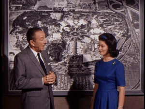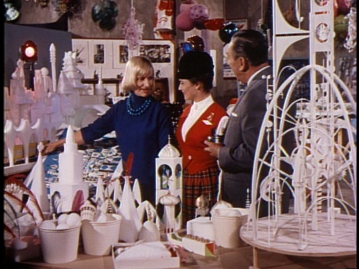 The episode opens with Walt and Julie Reihm, who had been named Miss Disneyland Tencennial, in the Imagineering Department. As the two go around the room, they meet Disney Legends Mary Blair, John Hench, Marc Davis, Rolly Crump, Blaine Gibson, and Claude Coats, and learn about the upcoming attractions It’s A Small World, Plaza Inn, The Haunted Mansion and The Museum of the Weird, and Pirates of the Caribbean. The audience gets a glimpse into the processes that go into creating an attraction, beginning with preliminary sketches and moving on to scale models, with special variations for each attraction. For instance, for The Haunted Mansion, Walt explains to Julie, the Imagineers are collecting ghosts from all over the world, adding that “[they’re] making it very attractive to them, hoping they’ll want to come and stay at Disneyland, so [they’re] putting in wall-to-wall cobwebs, and we guarantee them creaky doors and creaky floors.” Suddenly Walt realizes that they have only ten seconds to get to Disneyland, and with the help of Tinkerbell, they arrive just in time for the parade in the Magic Kingdom.