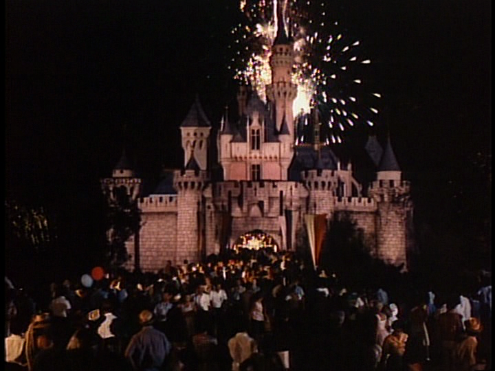 Everyone is asked to turn towards Sleeping Beauty’s Castle, where a fireworks show is being performed with several characters showing up, including the Three Little Pigs, Alice and the Mad Hatter, and of course, Mickey and Minnie. Tinkerbell starts flying over the park from the Matterhorn, and sets off the celebration. Walt is then seen again, still surrounded by autograph seekers, and he points out a Tahitian floor show being performed with several energetic Tahitian dancers, including a fire knife dancer. They then have a performer do the Tahitian Fire Walk, an important ritual that surprises many an audience member. Afterwards, Walt is seen again, surrounded by autograph hounds, and he introduces the jazz performers on the Mark Twain. The original girl that started off the chain of autograph seekers (and who stole Walt’s popcorn) returns, bringing him back his popcorn. He promises to catch up with the audience later, as two children stop to ask him to sign their maps.