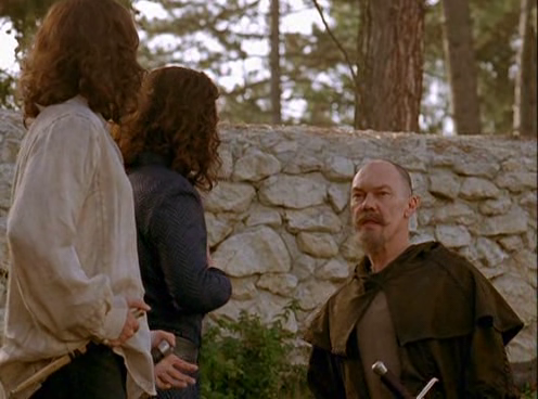 As Gwyn and Philip wander through town, Philip tells Gwyn that the death of “Philip” is no great loss for England, as he preferred wine and women over affairs of state. Gwyn informs him that a prince has an obligation to his people, but before he can respond, she is given a notice from a nearby stand for an archery tournament, with the winner granted a seat at the Sheriff’s banquet. The two run off to enter, with Gwyn determined to win. Both Philip and Gwyn perform well, although Philip is the one to advance to the finals. Philip lets Gwyn perform as his proxy, and Gwyn shoots the shot that breaks the Sheriff’s arrow, with a style reminiscent of Robin Hood, which arouses the Sheriff’s suspicions. Nevertheless, she is declared the winner and they sit at the banquet. When Philip sees Cardaggian at the banquet, he tells her they have to flee or they will both be killed, but promises on his honor that he will help Gwyn rescue her father. As the two leave, the Sheriff’s men are sent out into the woods to search for Philip. Gwyn and Philip then meet with Friar Tuck and Froderick, and they soon come up with a plan to rescue the two men from prison.